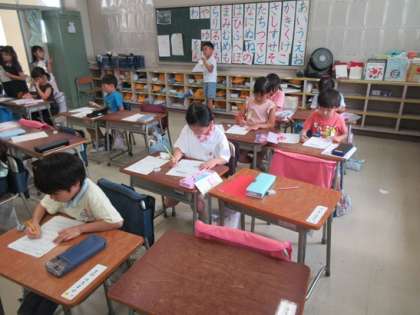 順番の数え方を確かめています。プリントができたら先生に確認してもらいます。