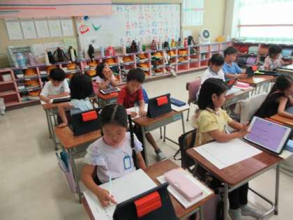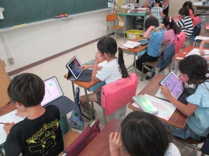 ロイロノートやワークシートを使いながら、夏の言葉を広げています。