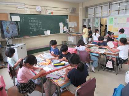 2年1組の図工の時間です。