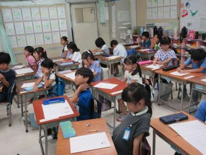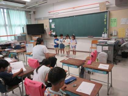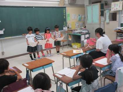「おむすびころりん」のお話を、場面ごとに分担して、音読の発表会です。