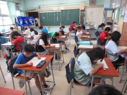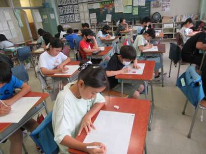 日本地図の描かれたプリントです。全国の都道府県の名前を確認しています。全部わかるかな?