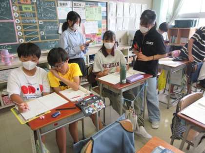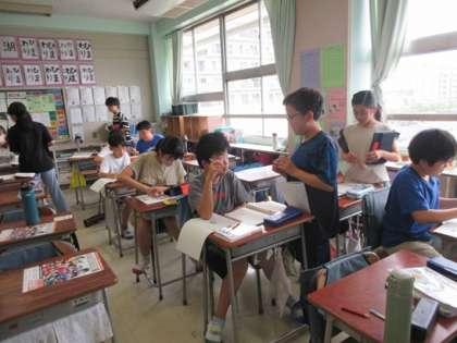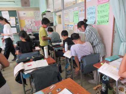 1学期の学習内容の復習です。わからないところは、友だちから教えてもらいます。