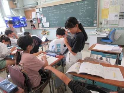 1学期の学習の復習の時間です。教えあうことは互いに学びあうことにつながります。