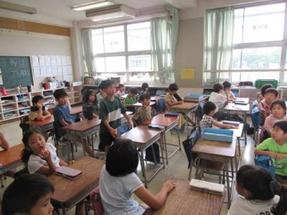 1学期で転校する友だちとのお別れ会について考えています。自分の考えを上手にみんなに伝えていますね。