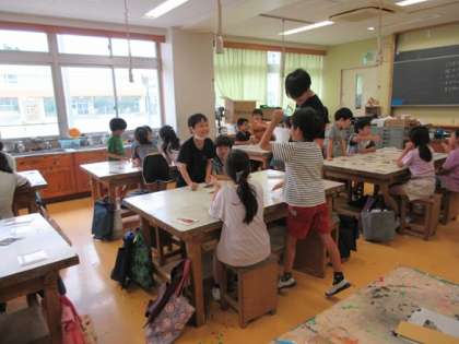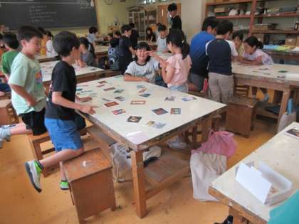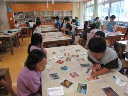絵画の観賞用カードを使い、絵の特徴をもとに、ゲーム化していました。