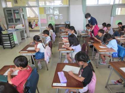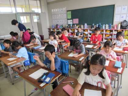問題文から式を立て、算数ブロックで確認しながら、ひき算の確かめを進めていました。