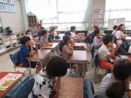 一学期の理科の学習は今日が最後のようです。つい先ほどまで校庭で理科の実験をしていましたが、しっかりとまとめの時間を過ごしていました。