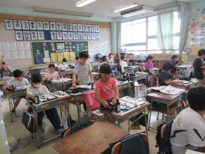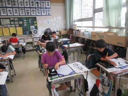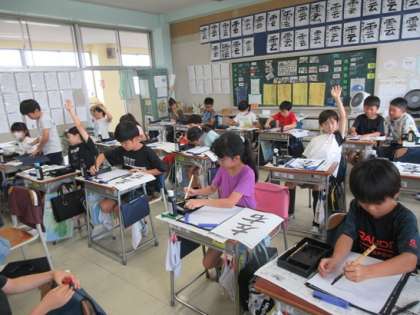 「右」「左」と形はよく似ていますが、書き順やバランスの違いに注意しながら書きます。