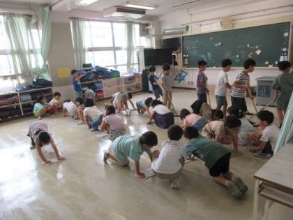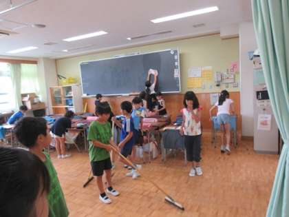 一学期も明日が最終日です。教室の中を休みに前に全員で掃除をします。