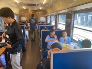 SL大樹の車内で昼食です。室内での食事で、ほっと一息です。