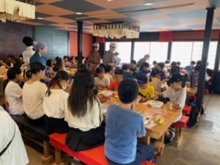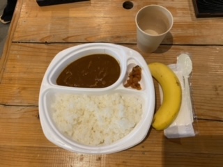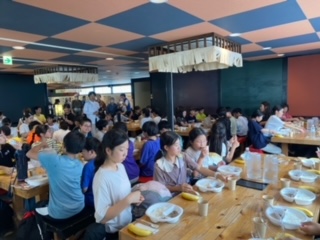 宿泊行事恒例のカレーライスです。普段よりも遅めの時間になったせいもあり、しっかりと食べています。