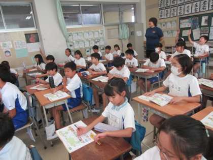 今日のテーマは、一日の生活についてです。時刻とそのときにやっていることについて、英語の言い方を学習しました。