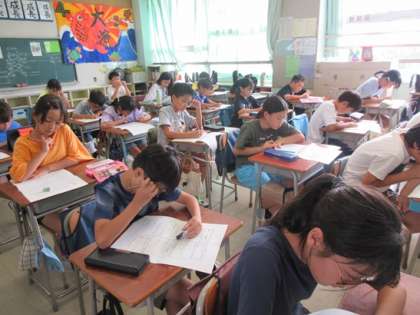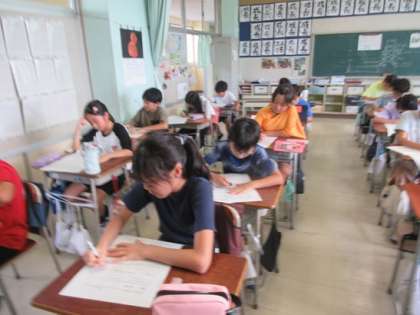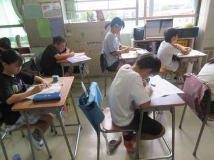 4年生の学習内容の確かめテストのようです。子ども達の真剣度が伝わってきます。
