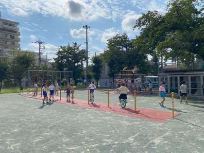 水曜日の朝遊びの時間です。暑いせいか、出てくる子ども達が限られていますが、元気遊んでいます。
