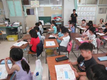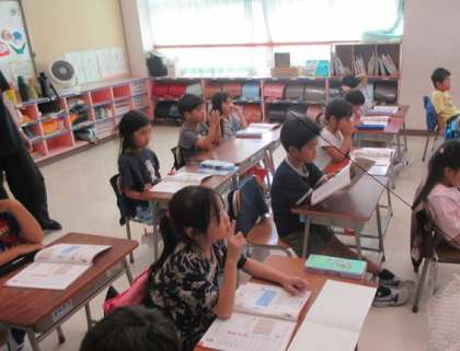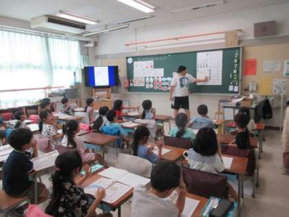 表を作って、数の整理の学習です。手順道理にできるよう、先生も丁寧に繰り返し説明をしています。子ども達もしっかりと話を聞いています。