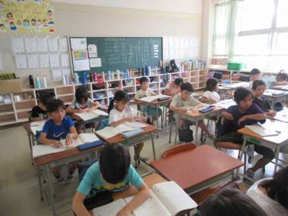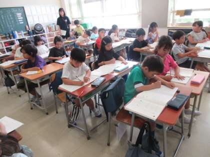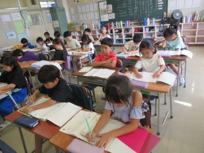 教科書に載っている詩を、ノートに書きうつします。詩の特徴をつかむことができます。