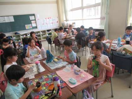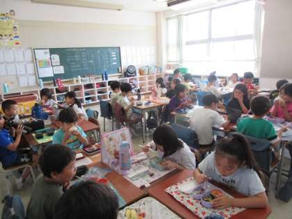 給食とは違いあっという間に準備が終わります。それぞれのお弁当を残さず食べます。