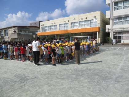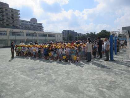 今日は、全校・学年・学級の集合写真を撮影しました。朝から暑かったのですが、上手に並ぶことができ、短い時間で終わりました。明日は一文字を空撮します。