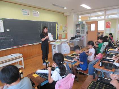 3年生になって始まった毛筆の学習です。難しいのは自分の名前です。細筆を使ったり、ほかの字よりも小さく書いたりと、なかなかうまくいきません。