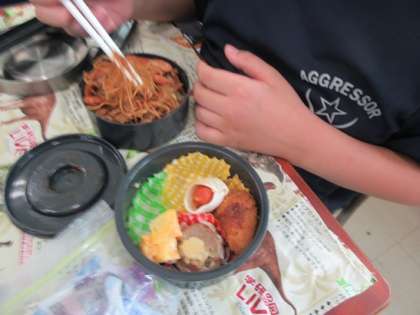 下段 焼きそば弁当です。面を入れてきて言うる子も結構います。