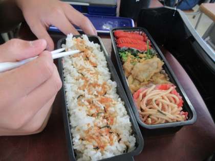 中段 ご飯とおかずのマッチ感がとても良いです。「おべんとう」という感じです。