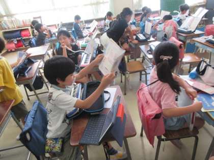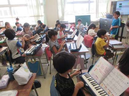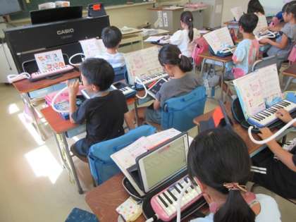 鍵盤ハーモニカの練習をしています。上手にできるようになったら、タブレットで録画します。