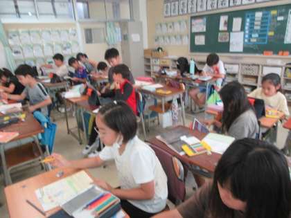 本に着ける帯やポスターなどを作成する学習です。短い言葉や分で伝えることをめあてにしています。