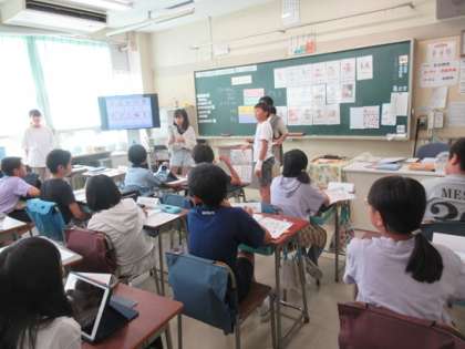 I can 〜.や Can you 〜.の構文を使って、スポーツをテーマに友だちと会話の学習です。