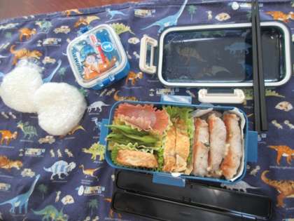 上段 ご飯の上に、そぼろと手作りのふりかけでしょうか?