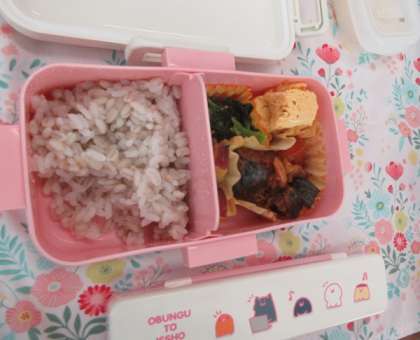下段 よく見ると、玄米ご飯です。丁寧に詰められています。