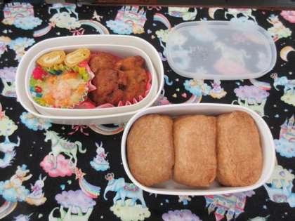 中段 お稲荷さんです。手がかかりますが、お弁当にはうれしいです。