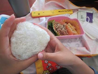 中段 存在感抜群の、大きな塩おにぎりです。