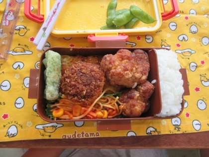 下段 揚げ物のおかずで満足感のあるお弁当ですね。