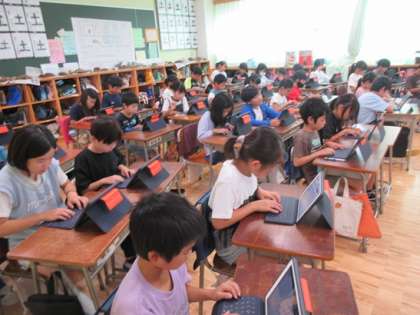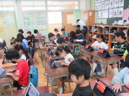 タブレットのローマ字入力を練習しながら、ローマ字の表記を合わせて学習します。