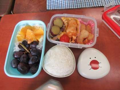 中段 果物がいっぱい、おかずもいろいろと詰まっています。