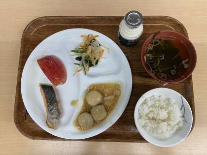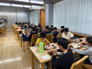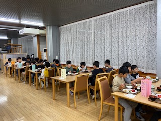 二日目の朝食です。食堂での初めての食事です。美味しくいただきます。