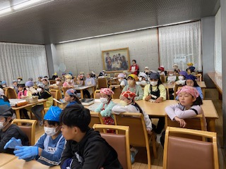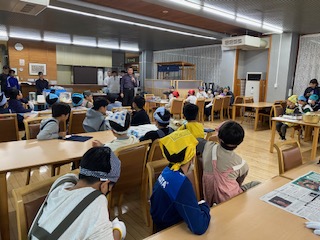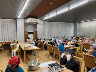 雨天のため午前中からこんにゃく作りを始めました。ビレッジの方から、こんにゃく芋のことについてお話をうかがいました。