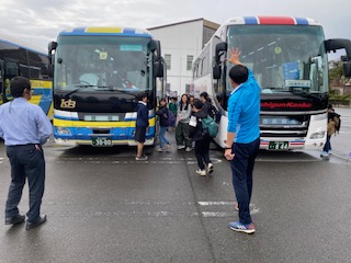 13:20 川場村を出発しました。川場小の小倉校長先生にお見送りをしていただきました。16:00ごろの学校到着を見込んでいます。