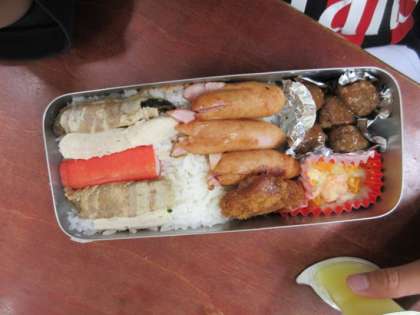 上段 細長いお弁当箱に細長いおかずです。なるほどの工夫です。