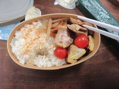中段 お稲荷ずしに唐揚げ、お弁当感いっぱいです。
