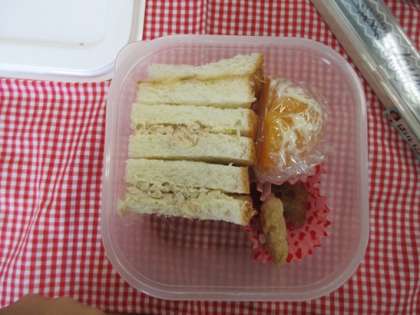 中段 ツナサンドのわきにあるミカンがうれしいですね。