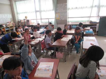 1年2組の道徳の時間です。