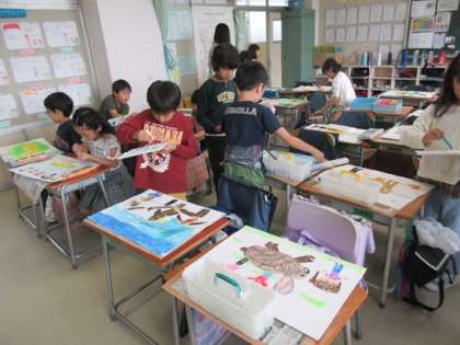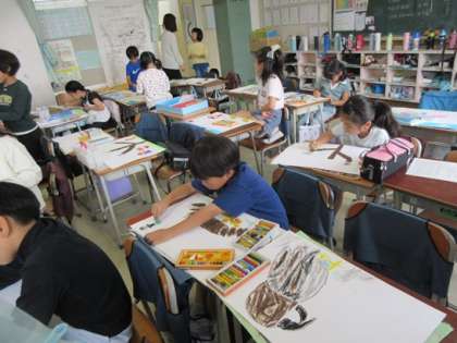 先週、遠足で行ってきた多摩動物園で見てきた動物たちの絵を描いていました。