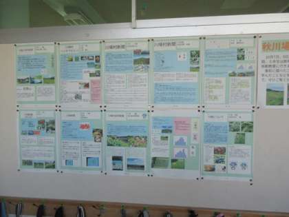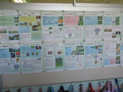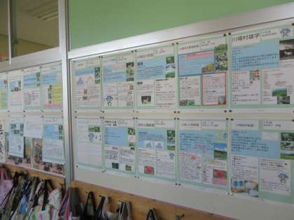 5年生の教室前の廊下掲示板です。川場移動教室を通して学習したことを、新聞にまとめました。