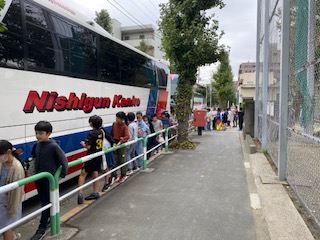 4年生は学校を12:50に出発しました。これからプラネタリウムでの学習に向かいます。