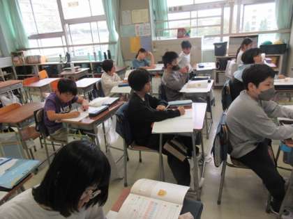 分数の約分の練習をしていました。公約数の学習を生かすことが肝要です。