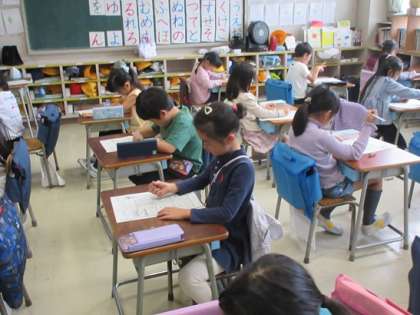 栗が上がりのたし算の確かめプリントです。最後まで丁寧に問題を解きます。