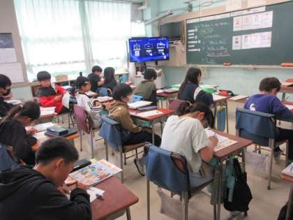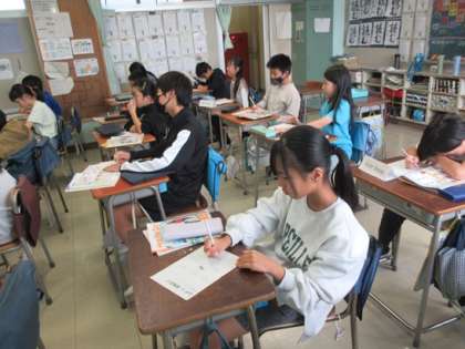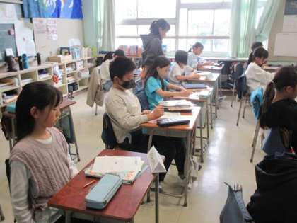 5年3組の英語の時間です。英語や英語活動では、ビンゴゲームで様々な言葉に触れていきます。今日のテーマは「家族」ですね。