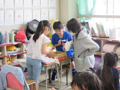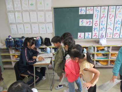 船橋希望中2年生の職場体験二日目です。今日はm2名の生徒が来ました。1年生のそばにやさしくかかわってくれています。素敵な中学生です。