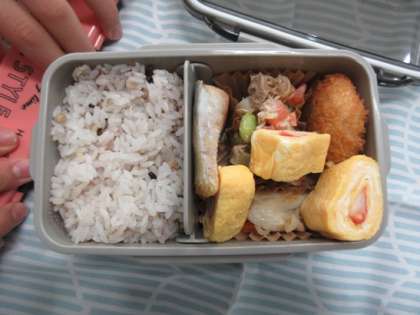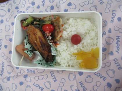 中段 おかずの鶏肉の存在感が目を惹きます。